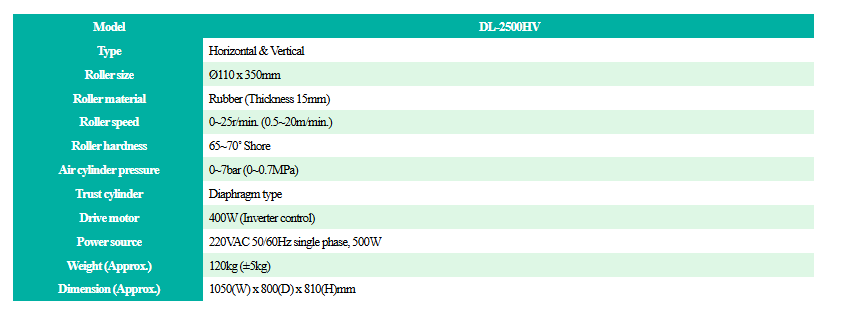 | Â Roller speed | Â 0~25r/min. (0.5~20m/min.) |