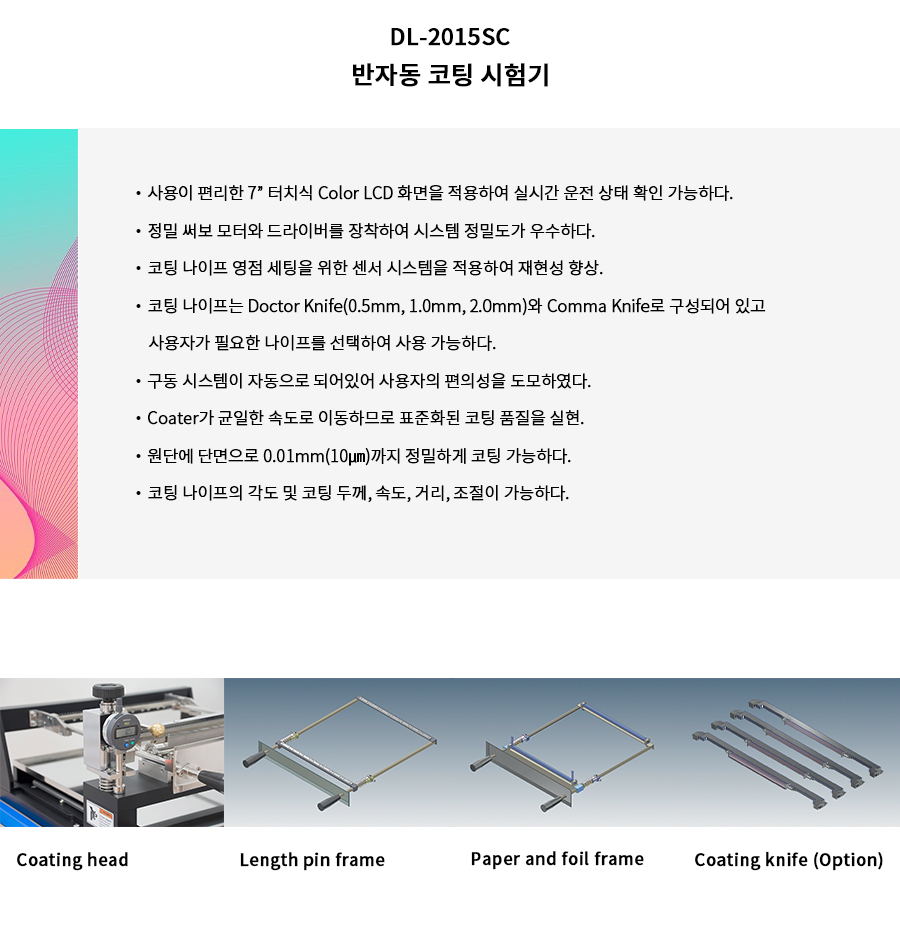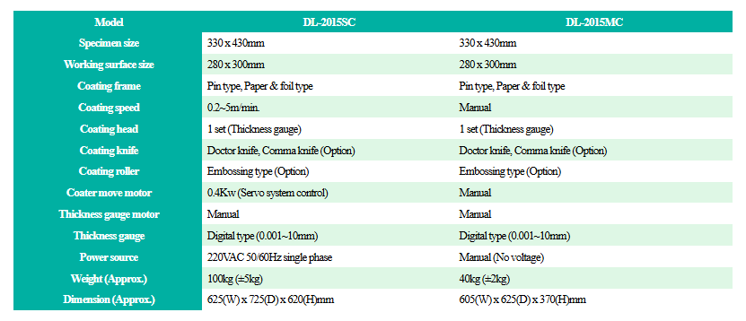 | Â Coating knife | Â Doctor knife, Comma knife (Option) | Â Doctor knife, Comma knife (Option) |