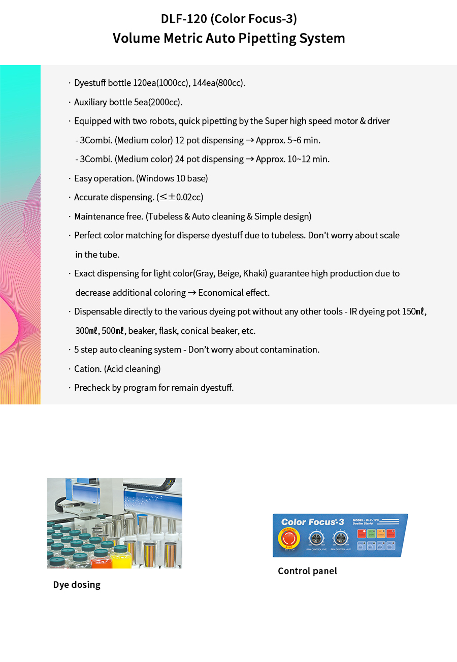 •Perfect color matching for disperse dyestuff due to tubeless. Don’t worry about scale in the tube.