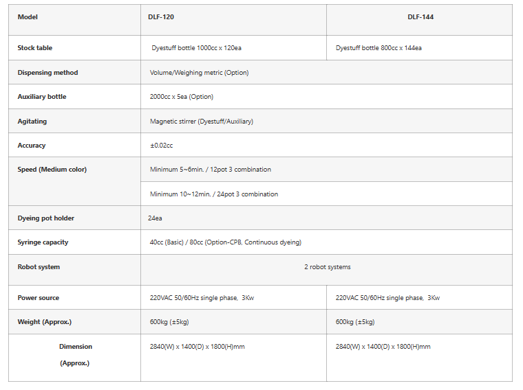 • Dyestuff bottle 120ea(1000cc), 144ea(800cc).