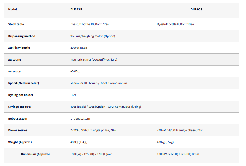 | Syringe capacity | 40cc (Basic) / 80cc (Option – CPB, Continuous dyeing) | |